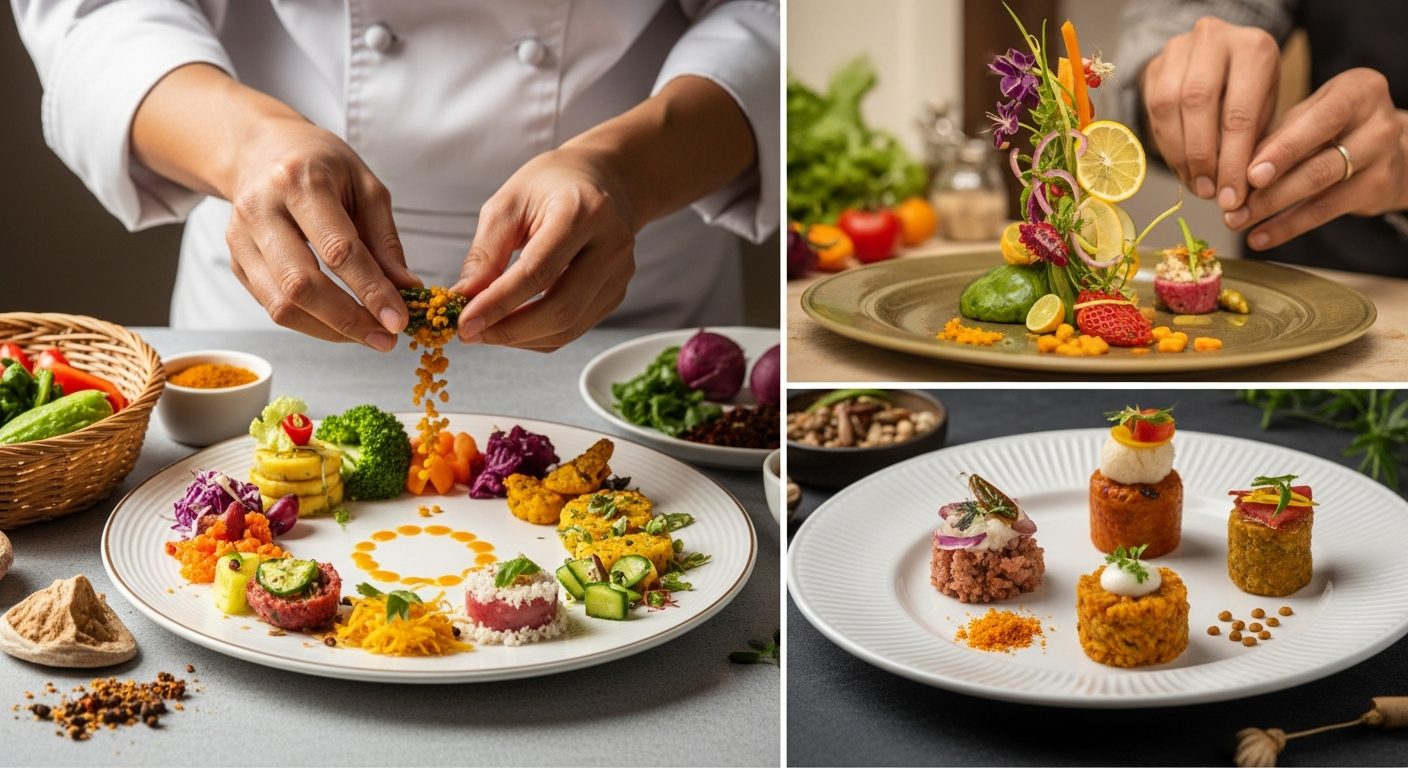彼の革新的なレシピ開発は、インドの農業科学者G.ナンマルヴァル氏の教えから大きな影響を受けています。農業の現場で食材と土のつながりを学んだ彼は、一つのレシピを完成させるために最大5年をかけることもあるほど、素材への深い洞察を持っています。その結果、定番のインド料理から現代的なヴィーガンメニューまで、極めて多様な食のバリエーションを展開しています。