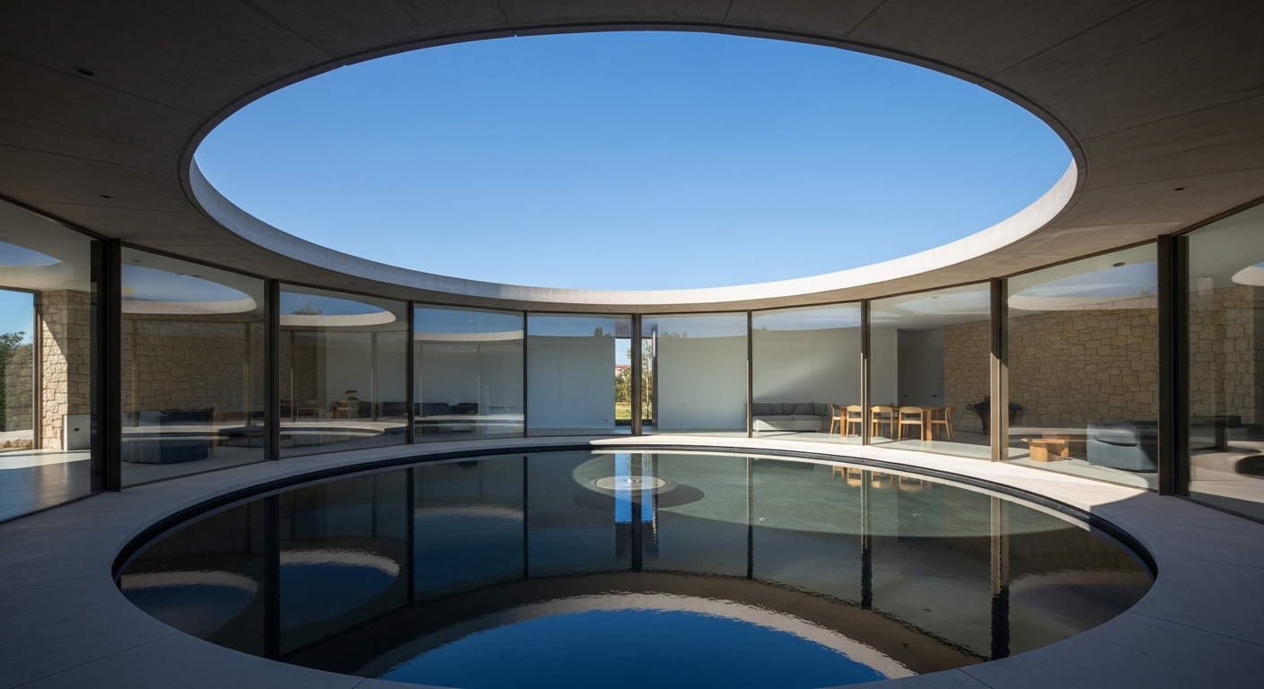 ポルトガルのエスモリズに完成した「Mimosa House(ミモザ・ハウス)」は、円形の中庭にプールを配し、天窓から降り注ぐ光と空を住空間の中心に据えた独創的な住宅です。建築家ペドロ・エンリケが手掛けたこのプロジェクトは、単なる居住空間を超え、自然との調和と内省的な環境を追求する現代住宅の新たな可能性を示唆しています。
