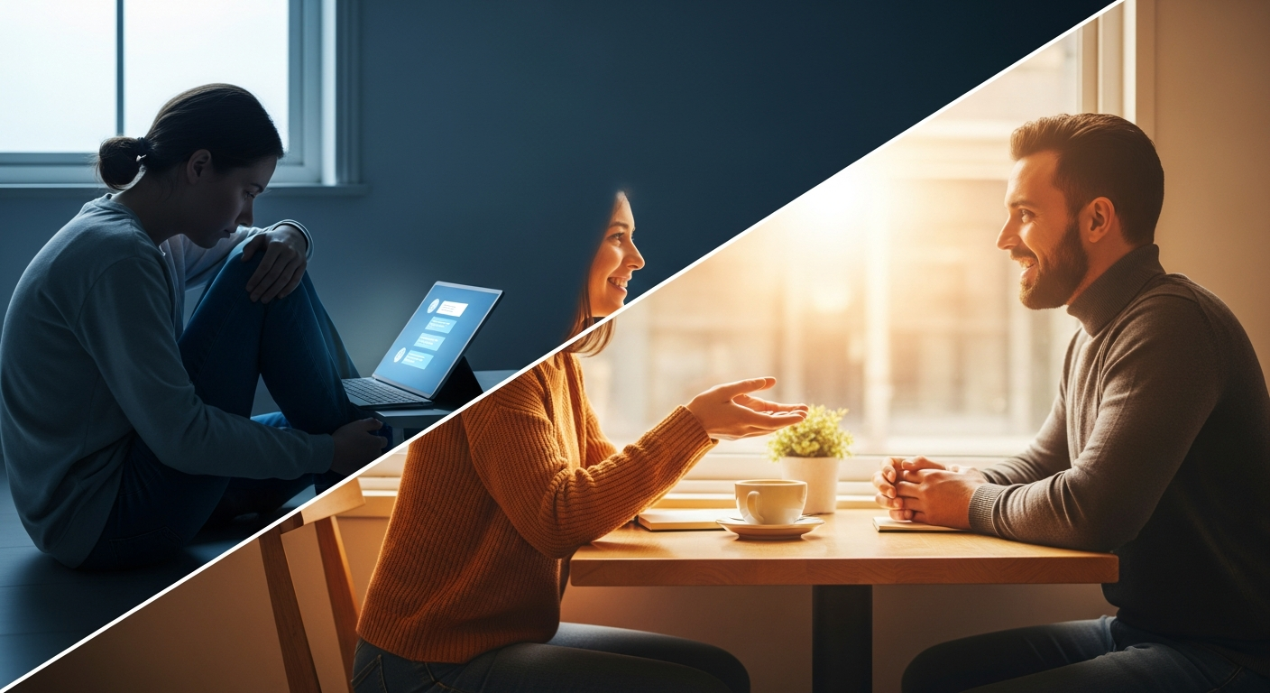 AIは計算された共感を提供できますが、人間関係には「予測不能性」や「相互理解のプロセス」が含まれます。今回の結果は、人間が孤独を癒やすために本当に必要としているのは、正しい答えや肯定的なフィードバックだけでなく、自分と同じように悩み、反応を返す「他者の存在」そのものであることを示しています。AIとの会話は「処理」ですが、人間との会話は「経験」なのです。