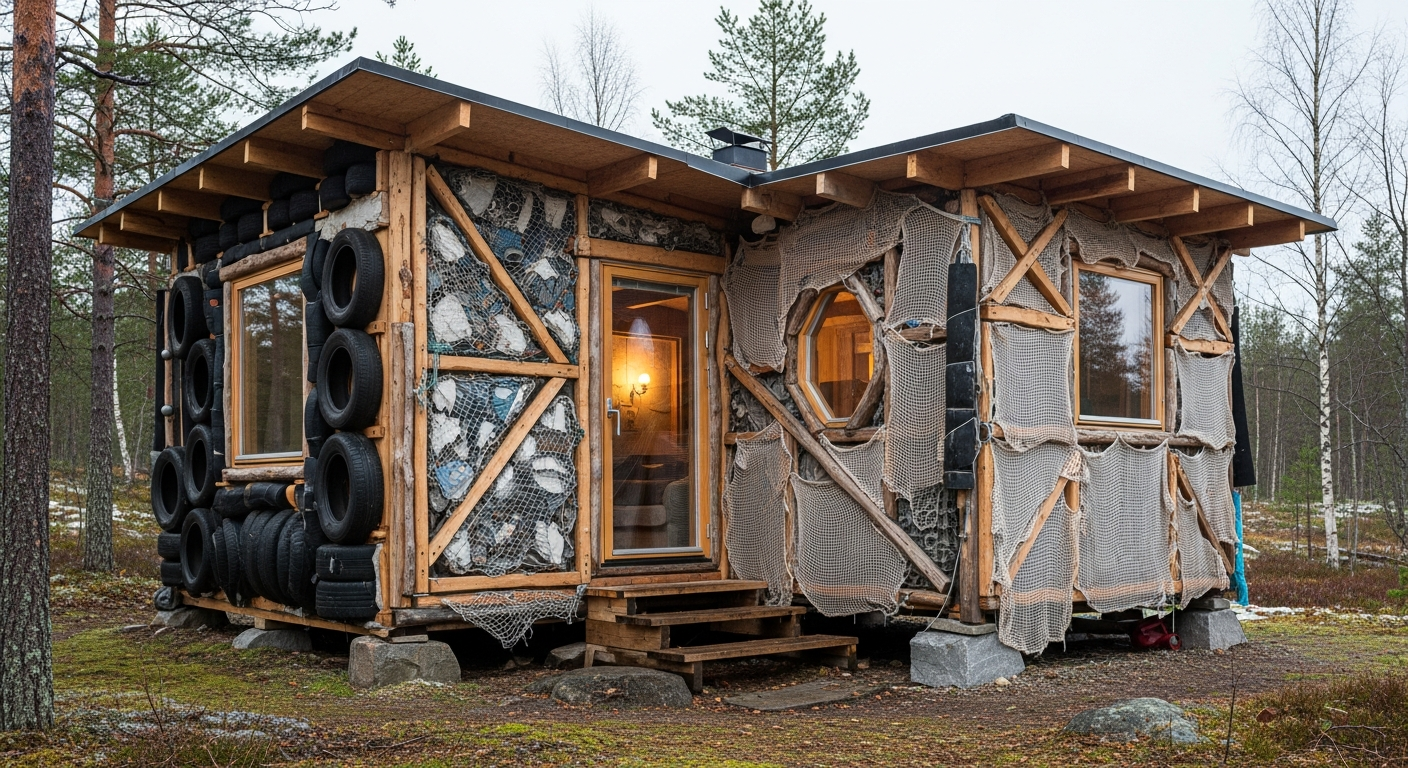 建築の持続可能性について議論する者は多いですが、実際にそれを自らの生活で体現する者は稀です。アールト大学の教授であり建築家のマッティ・クイッティネン氏は、廃棄された古いタイヤや漁網、スクラップ鋼材を用いて、わずか365平方フィート(約34平方メートル)の家族用住宅「Shadow(シャドウ)」を完成させました。フィンランドの地に立つこの挑戦的な住宅は、単なる実験場ではなく、クイッティネン氏とその家族の生活拠点として機能しています。資源循環型の未来を提示するこのプロジェクトは、建築業界における「消費」の概念を根底から問い直す存在です。
