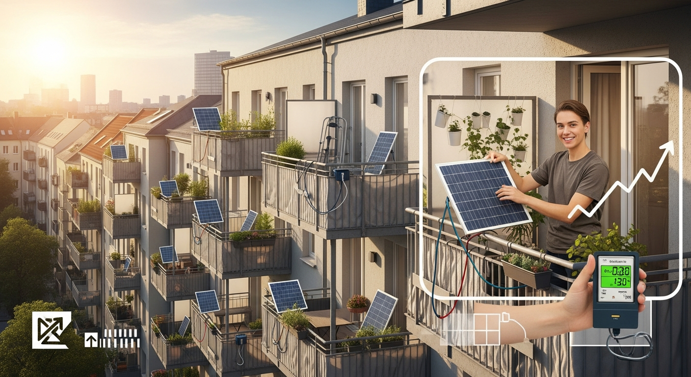 従来の太陽光発電は、一軒家の屋根に設置し、電力会社と契約して余剰電力を売電するスタイルが一般的でした。しかし、この方式では賃貸住宅の居住者やマンション住まいの人々は、設備を設置できず、再生可能エネルギーの恩恵から疎外されていました。「ベランダ発電所(ドイツ語でBalkonkraftwerk)」は、こうした層をターゲットに、ベランダや屋外スペースに1〜2枚のパネルを設置するだけの簡易的な仕組みとして登場しました。