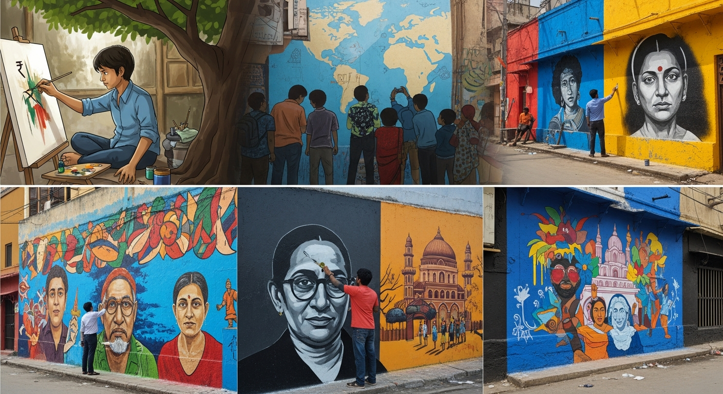 デリーの狭い路地裏で育ち、日々の食事にも事欠くほどの困窮の中にいた一人の少年が、今やインド中の街壁を彩る著名な壁画家として活躍しています。その軌跡は、1ルピー(約1.8円)の美術教室という小さな出会いから始まりました。本記事では、努力と才能で運命を切り拓き、Shah Rukh KhanやLionel Messiといった世界的なアイコンを壁画に描くまでに至った彼の情熱の物語を紐解きます。